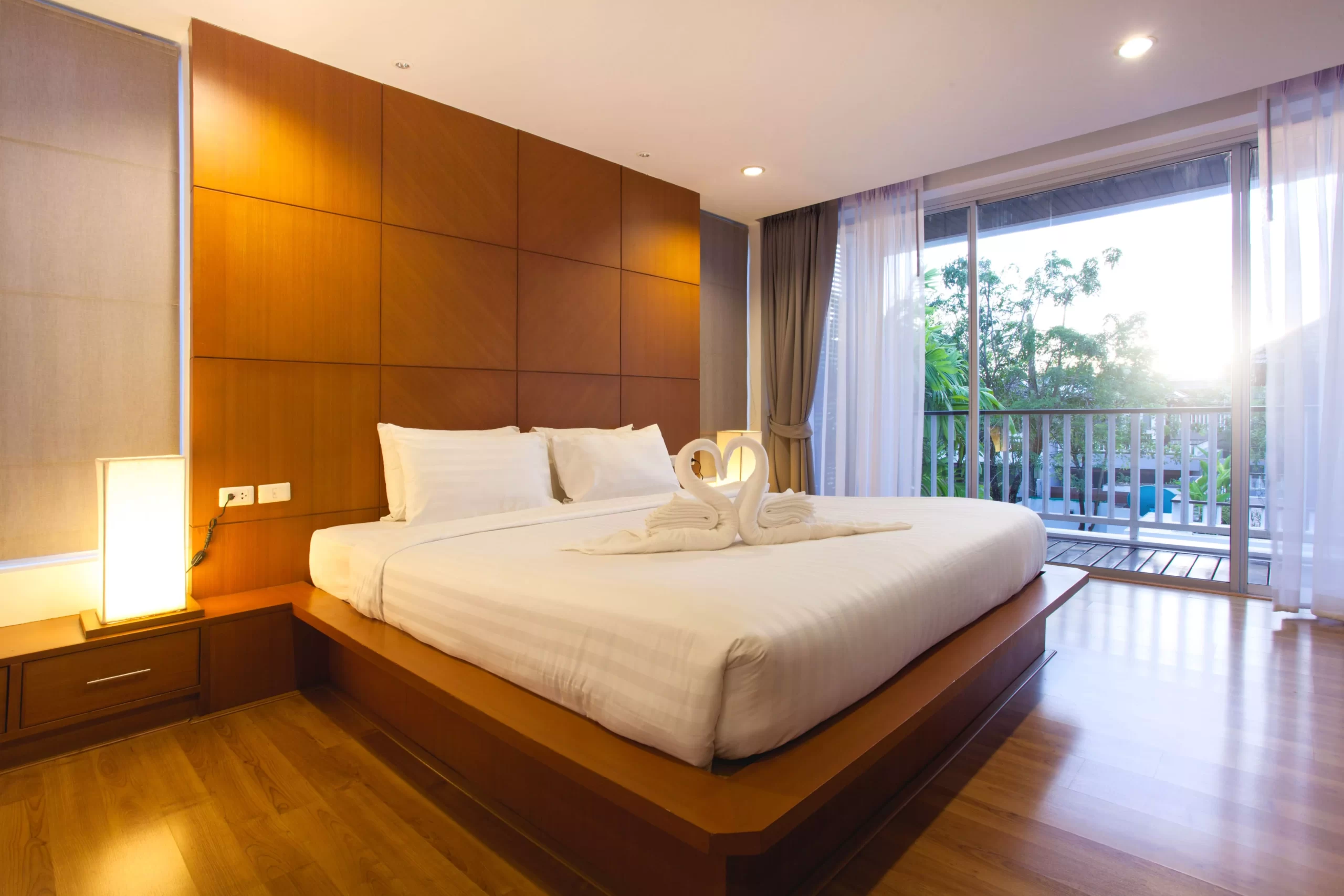 These materials offer resistance against moisture, wear, and frequent cleaning — ideal for hotel environments.